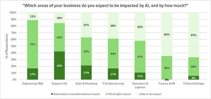 3. Enterprises see the highest impact potential for AI systems in engineering and support