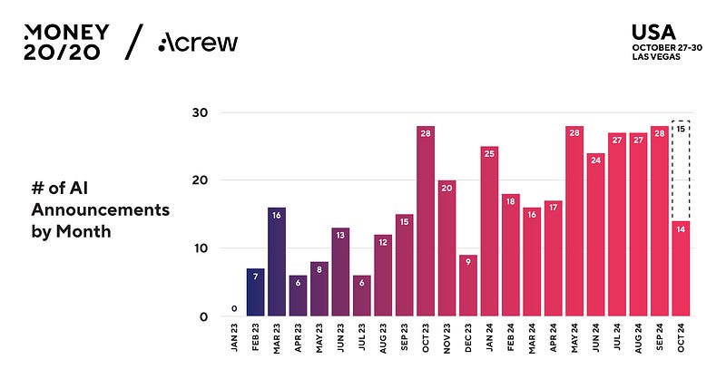 At Acrew Capital, we partnered with Money 2020 to create the Financial Services AI Adoption Index — a massive undertaking profiling 221 companies and analyzing 376 AI initiatives.