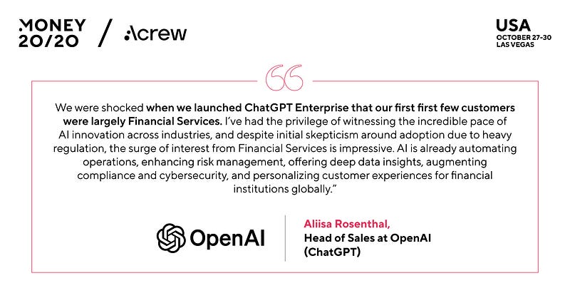 Aliisa Rosenthal, Head of Sales at Open AI told us that “when we launched ChatGPT Enterprise… our first customers were largely Financial Services.”