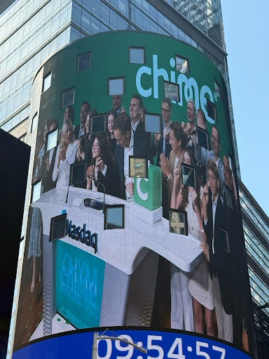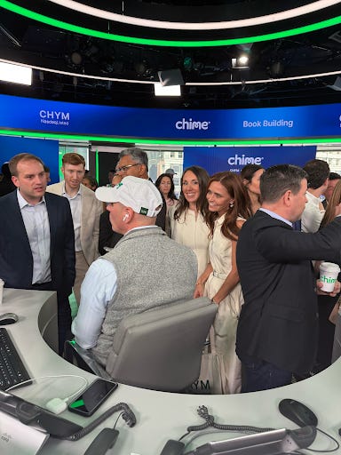 P.S. The best thing I ever did for Chime wasn’t the round I led. The best thing I ever did for Chime was, as a brand new board member, introducing Matt Newcomb to Chris. I’ve loved being on this journey with Matt from our shared beginning. But, today, 9 years later, watching Matt be the CFO to take this company public overwhelms me with a joy I could never have imagined. (Shout to Lily Lyman and Brown University for bringing us together.)