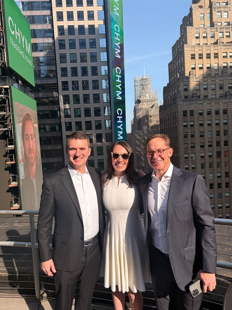 Chris Britt (CEO & Co-founder, Chime), Lauren Kolodny (Co-Founder & Managing Partner, Acrew) and Ryan King (Co-founder) celebrate Chime’s Opening Bell Ceremony at Nasdaq in NYC